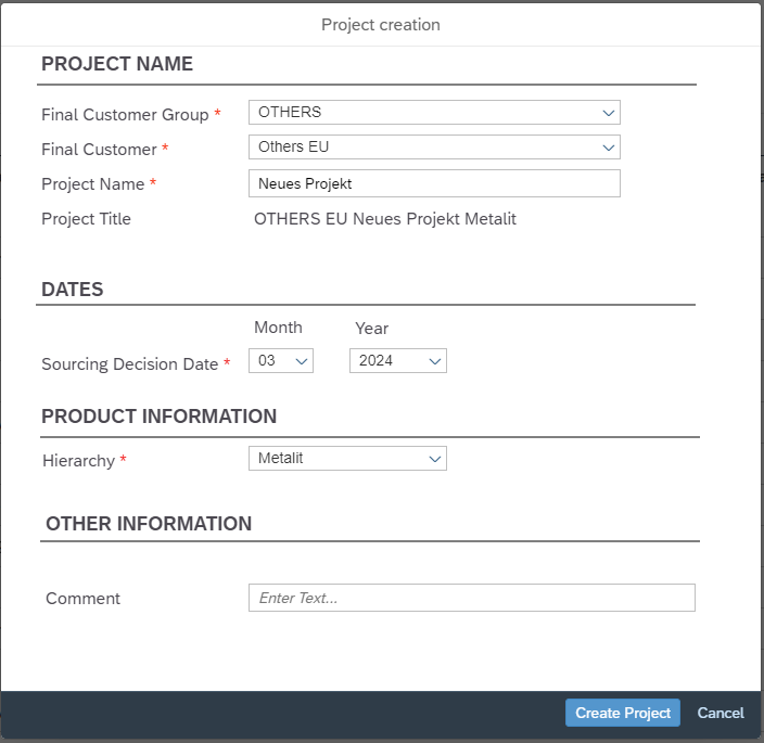 Die Preise und Absätze werden auf sogenannten „Line Items“ geplant. Ein Projekt kann mehrere Line Items haben. Jedem Line Item ist ein Material zugeordnet, welches eine Vielzahl an Eigenschaften besitzt. Auch das Line Item selbst hat zahlreiche Eigenschaften (Verkaufs- und Produktionswerk, Kunden Land/Region, SOP (Start of Production), EOP (End of Production), Kommentare, etc.)