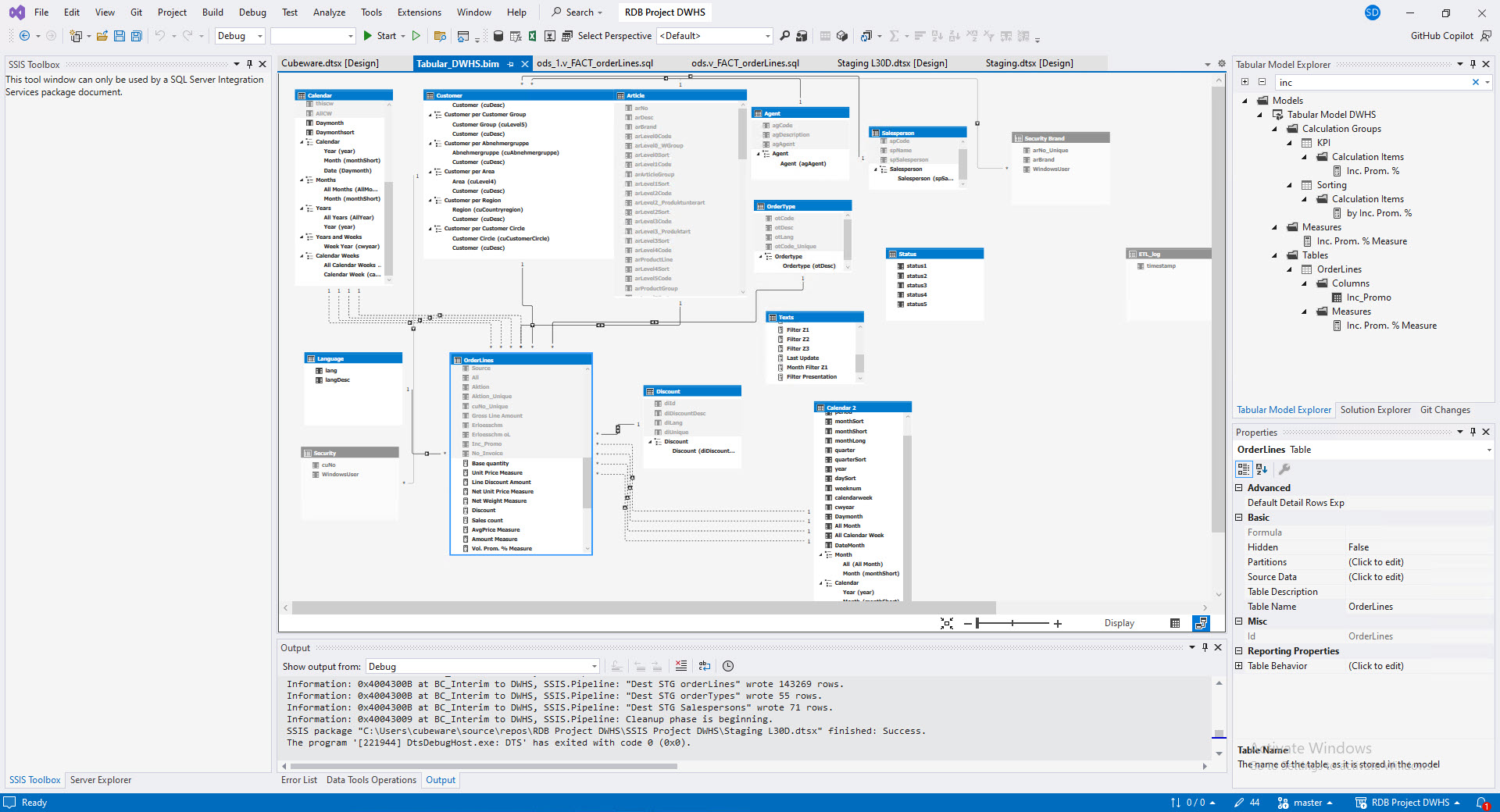 Kernanforderung war die Möglichkeit, sowohl historische Daten aus der Cubeware-Lösung als auch aktuelle Daten aus dem neuen ERP-System gemeinsam auswerten und vergleichen zu können. Um dies zu ermöglichen, wurde ein neues Data-Warehouse auf Basis von Microsoft SQL Server aufgebaut. Die Befüllung erfolgt über SQL Server Integration Services (SSIS), wodurch ein stabiler und automatisierter Datenimport aus den unterschiedlichen Quellsystemen gewährleistet ist.