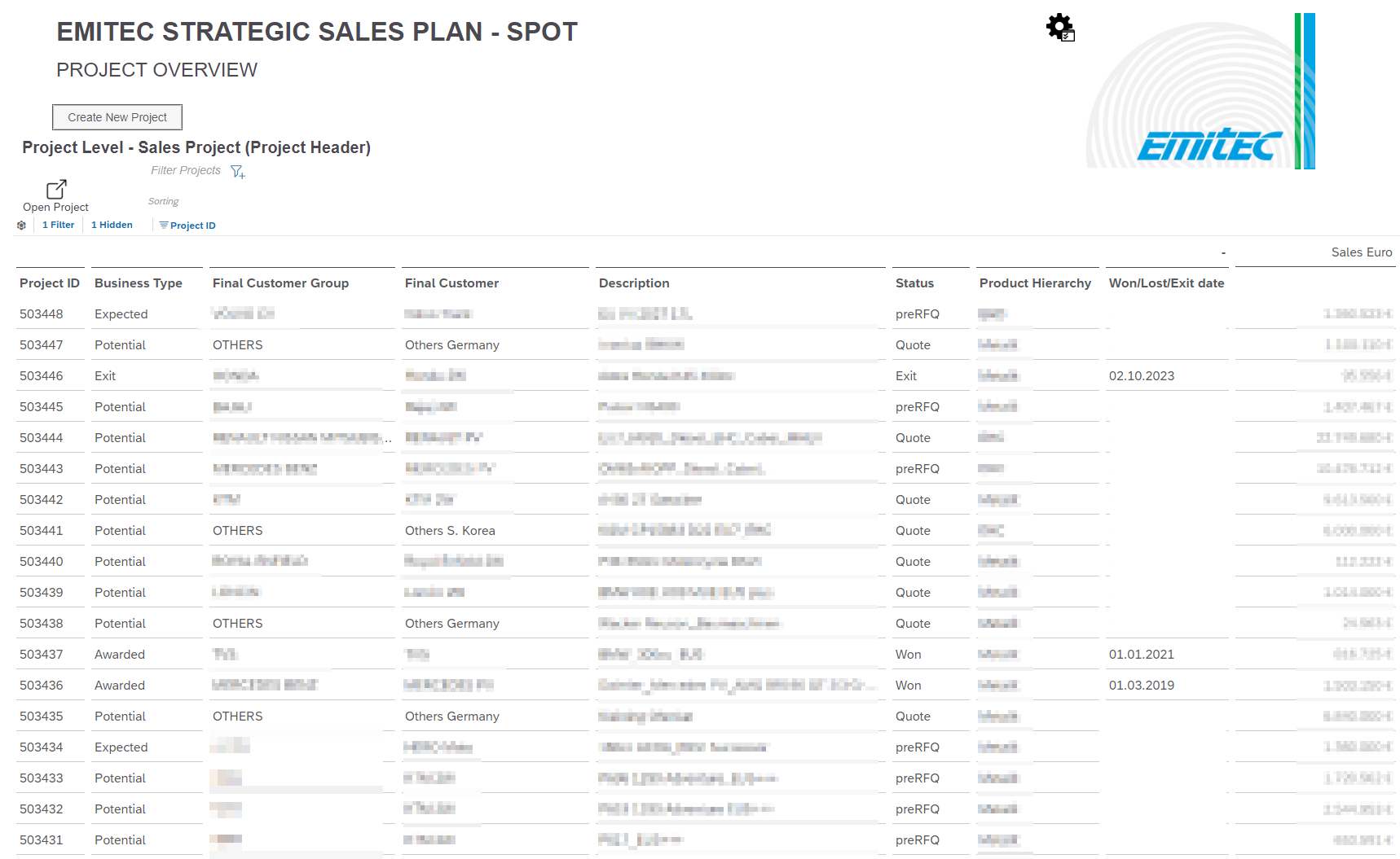 Ziel des Projektes war es, das bestehende strategische Sales Projektplanungs-Tool „SPOT“ (Sales Planning & Opportunity Tracking) abzulösen, da diese im Zuge des Carve Outs von der Vitesco Technologies nicht mehr zur Verfügung stand. Die neue Applikation wurde mit der SAP Analytics Cloud erstellt. Dank der umfassenden Einstellungsmöglichkeiten der SAP Analytics Cloud war es möglich, eine Planungsmaske zu entwickeln, welche die Funktionalitäten des alten Tools und auch neue Anforderungen mit abdeckt.