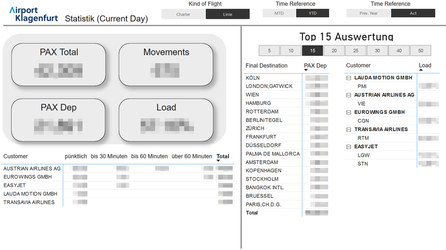 Ziel des Projektes war es, im Zuge der Digitalisierung des 2018 übernommenen Flughafen Klagenfurt, dessen Flugverkehrsstatistiken auf Basis der Flugbewegungen, Passagieranzahlen und Auslastungen der Luftfahrzeuge auszuwerten. Darüber hinaus sind die finalen Flugziele für den Kunden von großer Relevanz, um die Attraktivität der Endziele evaluieren und bewerten zu können. Außerdem wurden die Fakturierungsdaten aus dem Vorsystem übernommen, um im Reporting eine individuelle DB1 Rechnung darstellen zu können.